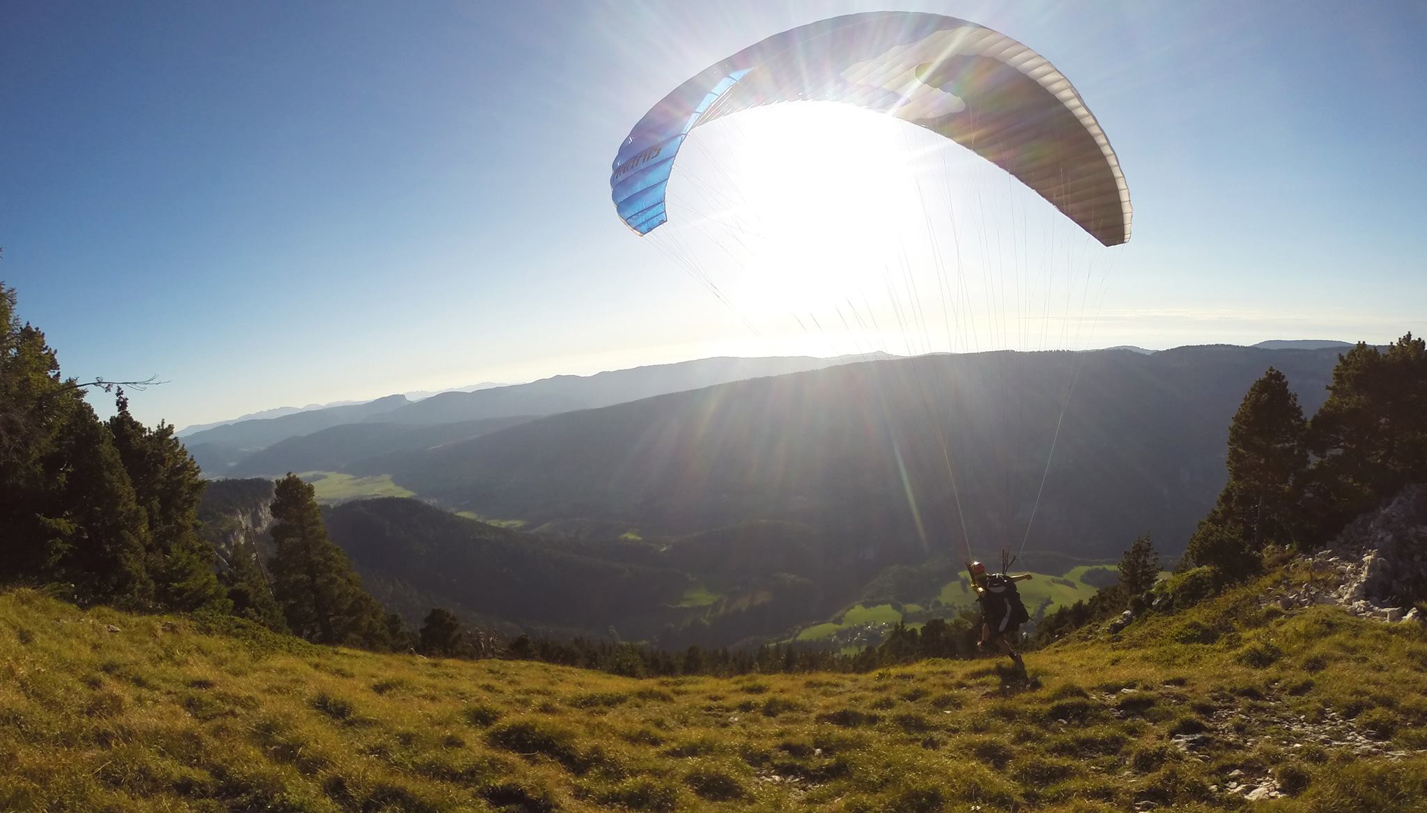 Un jour de printemps 2019, lors d’un vol de fin de journée en parapente dans la Drôme, je monte dans les thermiques aux côtés de grands oiseaux au vol apaisé. Cet instant magique où le soleil décline, j’aperçois le regard de l’oiseau sur moi. Il accepte ma présence et nous partageons le ciel.